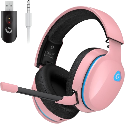 Gtheos 2.4GHz Wireless Gaming Headset for PS5, PS4 Fortnite & Call of Duty/FPS Gamers, PC, Nintendo Switch, Bluetooth 5.3 Gaming Headphones with Noise Canceling Mic, Stereo Sound, 40+Hr Battery -White