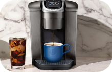 The Keurig K-Elite’s dedicated iced setting brews concentrated coffee meant for ice dilution. The Ninja’s “Over Ice” and cold brew modes also work well.