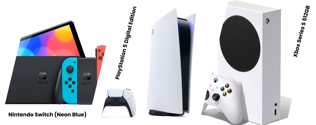 Here’s the deal: the Nintendo Switch (Neon Blue) gives you portability and Nintendo’s exclusive games. The PlayStation 5 Digital Edition delivers next-gen power and Sony’s incredible game library. The Xbox Series S 512GB offers the best value for Game Pass subscribers who want modern gaming without the premium price tag.